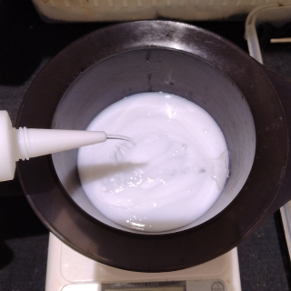 そうならように、通常は時間がかかるので行わない、カラー剤を専用マドラーでホイップ状にしてから塗布します。