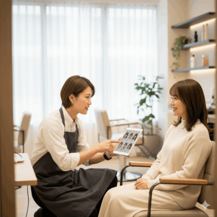 カウンセリングでは、お客様一人ひとりの髪のお悩みやライフスタイルを丁寧にヒアリングし、