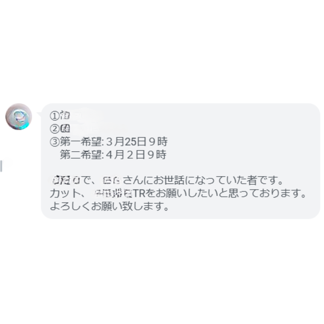 一般的な美容院とは異なることもあり、ご来店前にお電話でご質問をいただくことがあります。