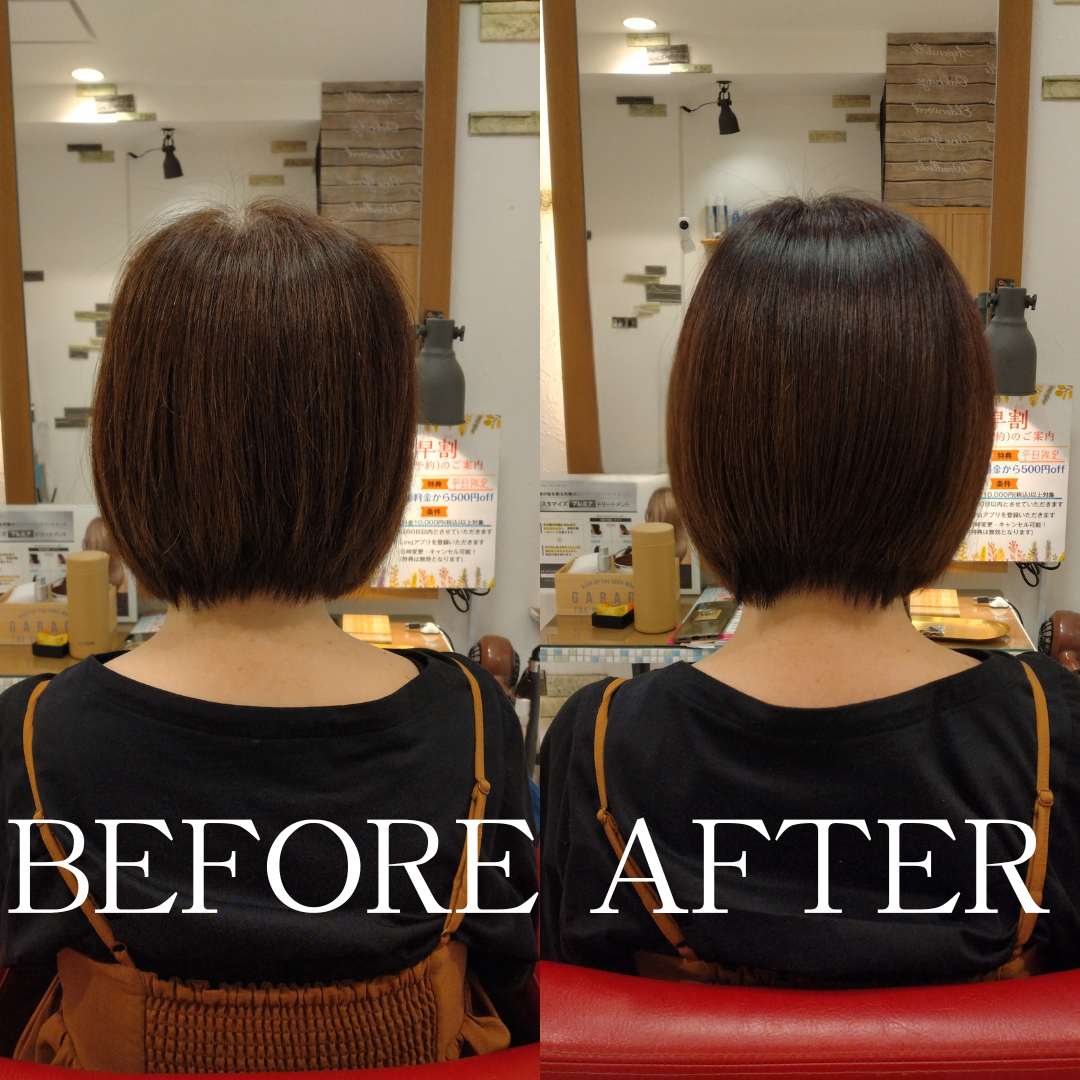 髪とても良くなりました。栄養と水分が入るとやっぱり変わりますね。癖毛が落ち着いてトゥルンとしてます。カラーもリタッチでしたが馴染んで良きです。