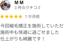 今回縮毛矯正を施術していただきました 施術中も快適に過ごせました 仕上がりも綺麗です!