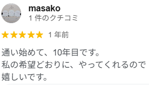 通い始めて、10年目です。 私の希望どおりに、やってくれるので 嬉しいです。