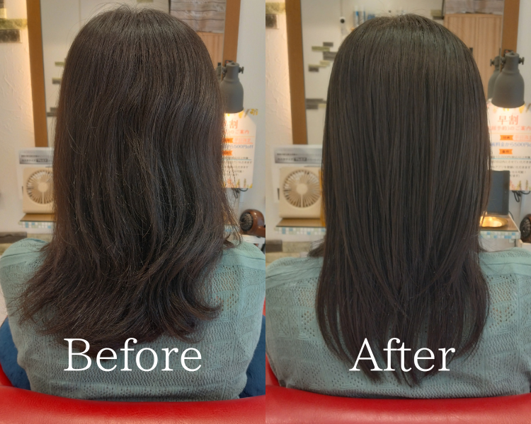 うるつや髪質改善で、ほわつき髪が艶やかでストンとする髪に変わる