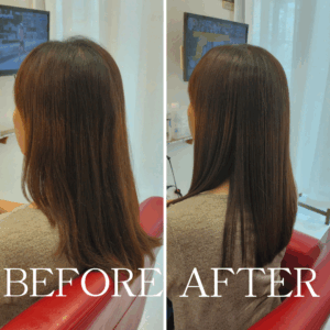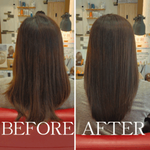 ①カラーによるダメージを緩和し、髪質改善トリートメントで美しい艶髪を維持します。