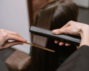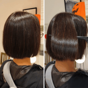 縮毛矯正は、薬剤と熱の力で髪の内部を整えるため、ほわつきを抑え、なめらかで手触りの良い髪に改善します。